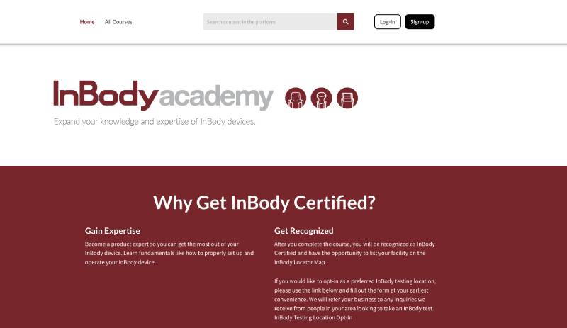 Academy website created for InBody USA Company clients to take online courses. Built with WordPress, LearnDash LMS, Paid Memberships Pro, Astra, and Elementor